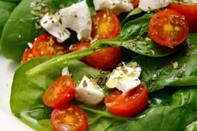 Ensalada de hierbas verdes con vinagreta de arándanos