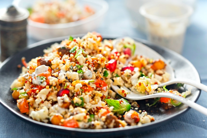 Ensalada de coliflor, uvas y lentejas al curry