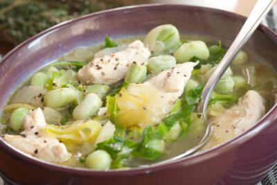 Leer mas...Sopa de pollo en 1 olla con frijoles blancos y col rizada