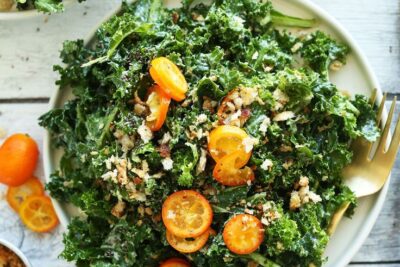 Ensalada de kumquat y col rizada con aderezo de tahini
