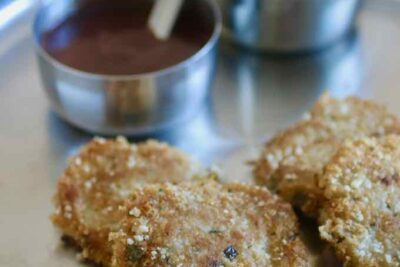 Aloo Tikki (pasteles indios de patata con chutney verde)