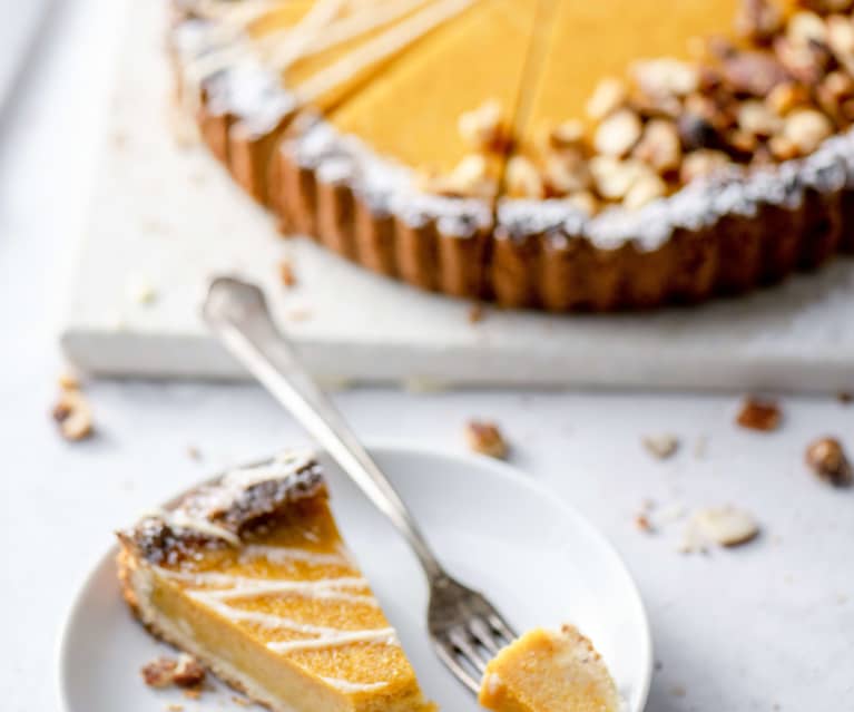 Servicio:1 rebanada Calorías:385 Carbohidratos:60 gramo Proteína:4 gramo Gordo:14 gramo Grasa saturada:2 gramo Fibra:2 gramo Azúcar:43 gramo
