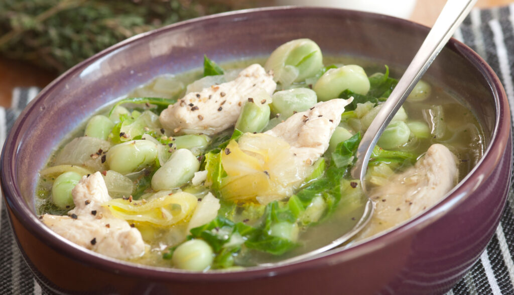 Sopa de pollo en 1 olla con frijoles blancos y col rizada