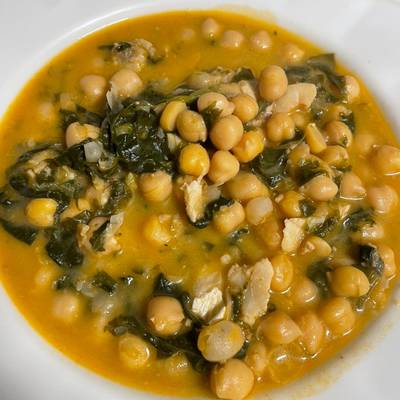 • Agrega la sopa a una olla grande y agrega el caldo de verduras y los garbanzos triturados. Llevar a ebullición a fuego medio. Luego reduzca el fuego a bajo y continúe cocinando a fuego lento durante 10 a 15 minutos, revolviendo ocasionalmente.